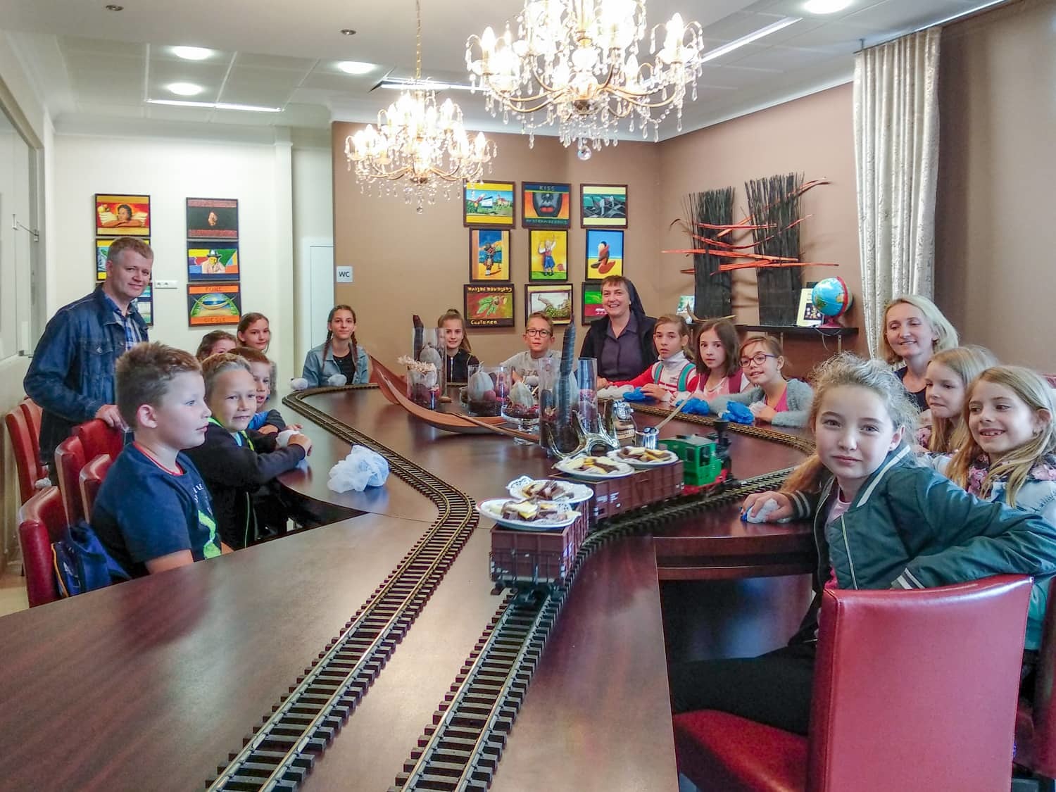 Danach gingen wir weiter Pizza essen. Zu fünft bestellten wir uns die größte Pizza, die ich je gesehen hatte. Als wir die Riesenpizza vernichtet hatten, ging es weiter zur Schokoladenmanufaktur Felber. Dort lernten wir über Kakaobohnen und wie aufwendig es ist eine Tafel Schokolade herzustellen. Natürlich naschten wir auch von einem Minizug, der uns Schokolade brachte. Nachdem wir alle einen Schokoladenvorrat für das nächste Monat gekauft hatten, machten wir uns wieder auf den Heimweg. Es war ein sehr schöner Tag.