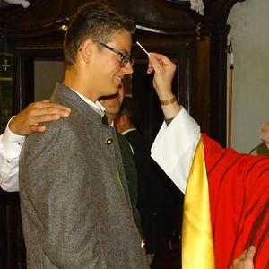 Pfr. Ruthofer firmte am Sonntag, 6. September 2020 zum ersten Mal im Auftrag des Herrn Bischof. In sehr feierlichem Rahmen spendete er 24 jungen Christen aus Frohnleiten das Sakrament der Firmung und salbte sie mit dem königlichen Chrisam-Öl