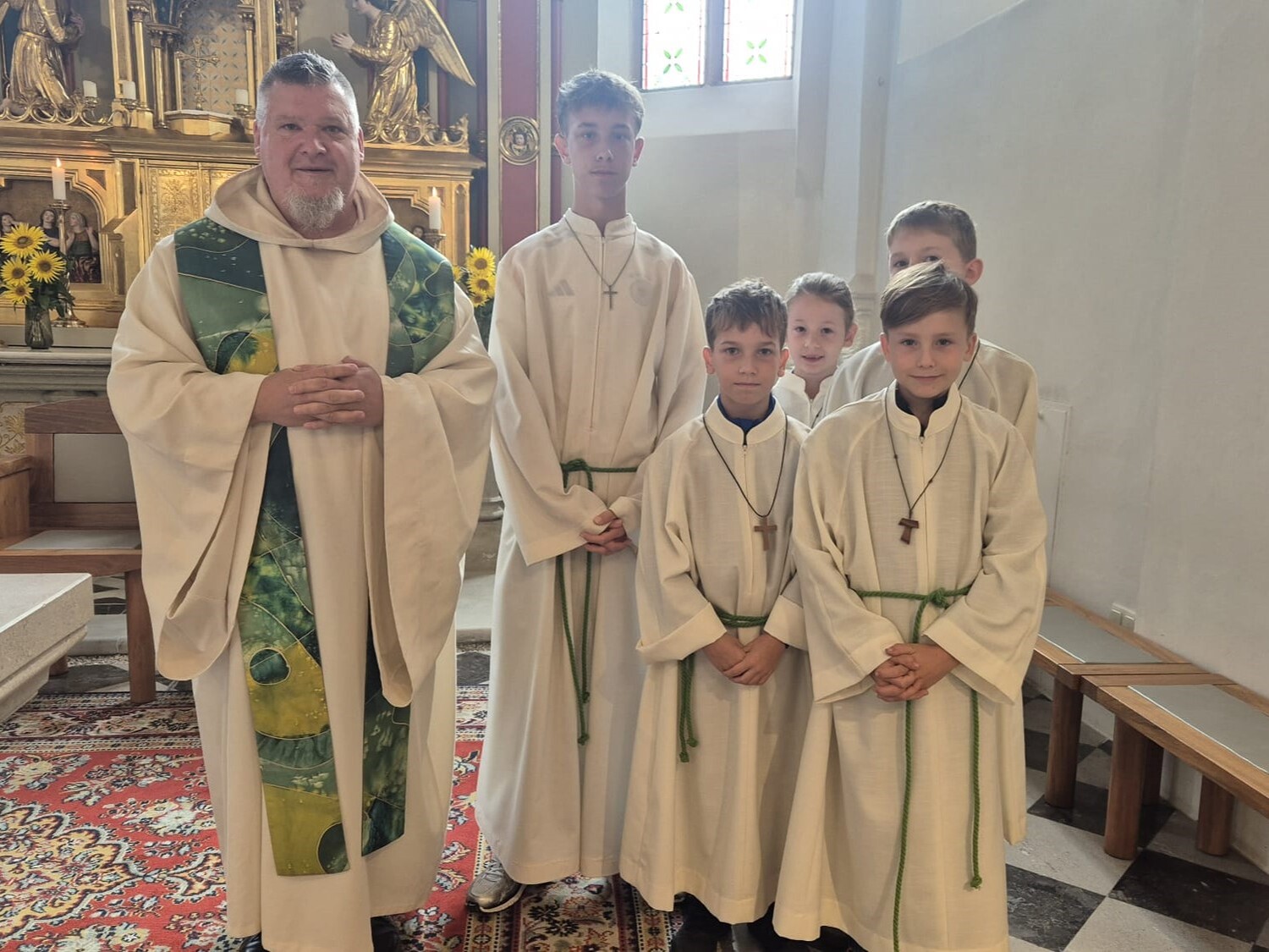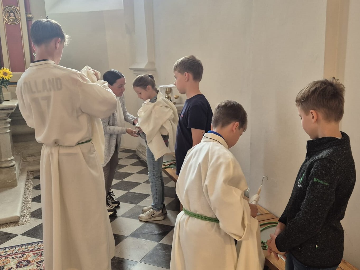 Im Rahmen einer Schnup­per­stun­de, durf­ten in­ter­es­sier­te Kin­der die Auf­gaben der Minis ken­nen­ler­nen und ei­nige ent­schie­den sich dazu, un­ser­en Pfarrer bei den Messen zu unter­stützen.