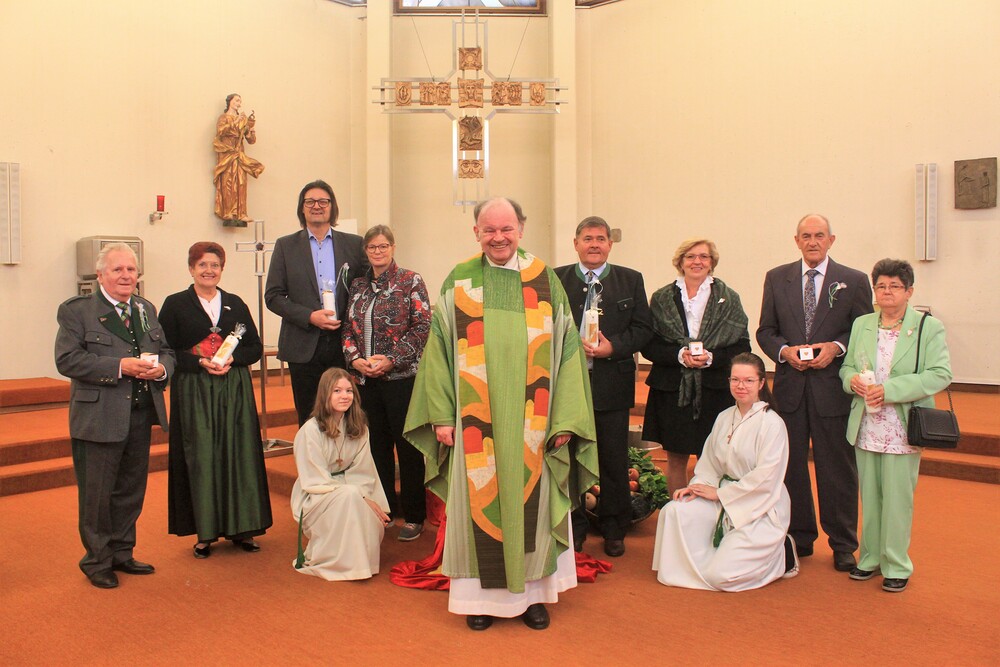 Es wurde im Rahmen des Festgottesdienstes nicht nur für Ernte gedankt, sondern auch für die Jahre überdauernde Liebe und die gemeinsamen Ehejahre. Am Ende der Feier erhielten unsere Jubelpaare eine Kerze und den Segen für die gemeinsame Zukunft.