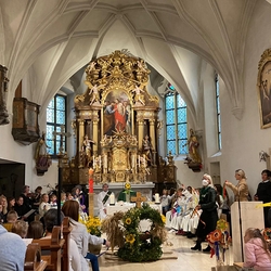 Danke allen Mitwirkenden, besonders Herrn Vikar Gerhard Hatzmann, Diakon Michi Zepf, den Minis, der Mesnerin, unserer tollen Musikgruppe, den Kindergartenkindern und Schüler*innen für ihre Beiträge, der LJ-Zettling für die Erntekrone, dem Sozialkreis für die köstliche Agape und dem PGR für den organisatorischen Rahmen.