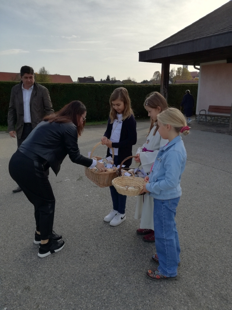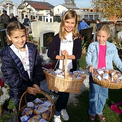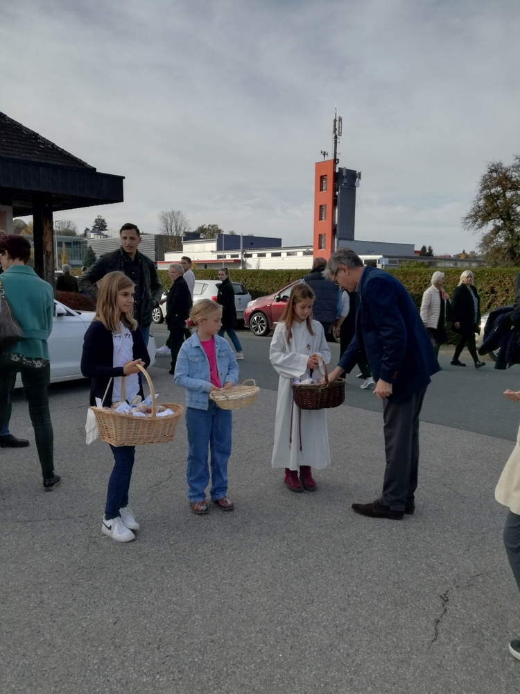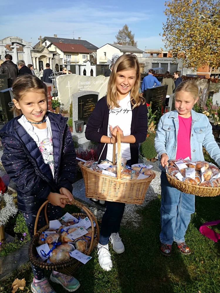 Zu Allerheiligen wurden die Striezerl dann nach der Gräbersegnung am Friedhof angeboten. Über viele freiwillige Spenden freuen sich die Minis!