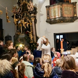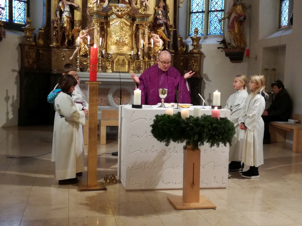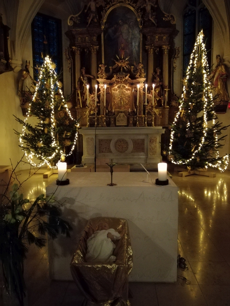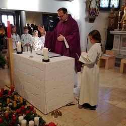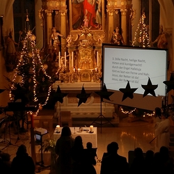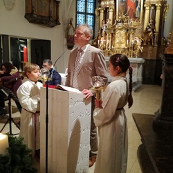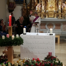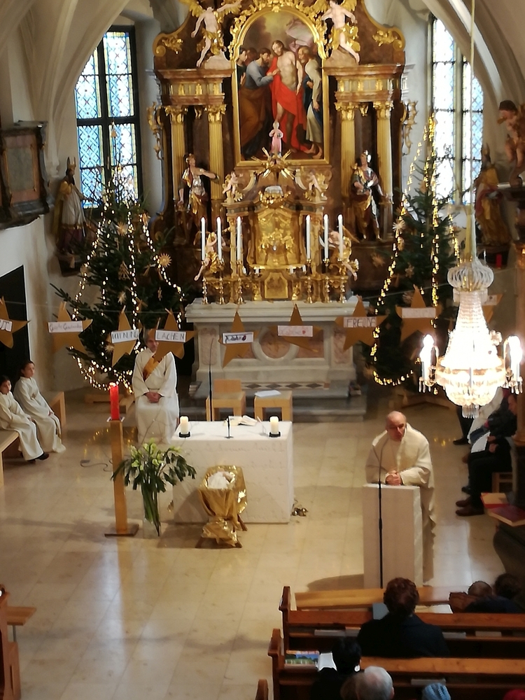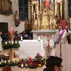 Am Christtag feierte Vikar Norbert Glaser mit der Pfarrgemeinde das Hochfest der Geburt Christi. Das Weihnachtsevangelium und seine Bedeutung für uns heute standen im Mittelpunkt des Festgottesdienstes, der vom Kirchenchor musikalisch gestaltet wurde. Unter der Leitung von Organistin Magdalena Moser wurde neben traditionellen Weihnachtsliedern eine Messe von Karl-Bernhardin Kropf gesungen, die in einstimmiger Fassung - Gotteslob 715 – von den Gläubigen mitzusingen war. So erlebten wir in unserer weihnachtlich strahlenden Kirche einen wahrlich festlichen Weihnachtsgottesdienst!