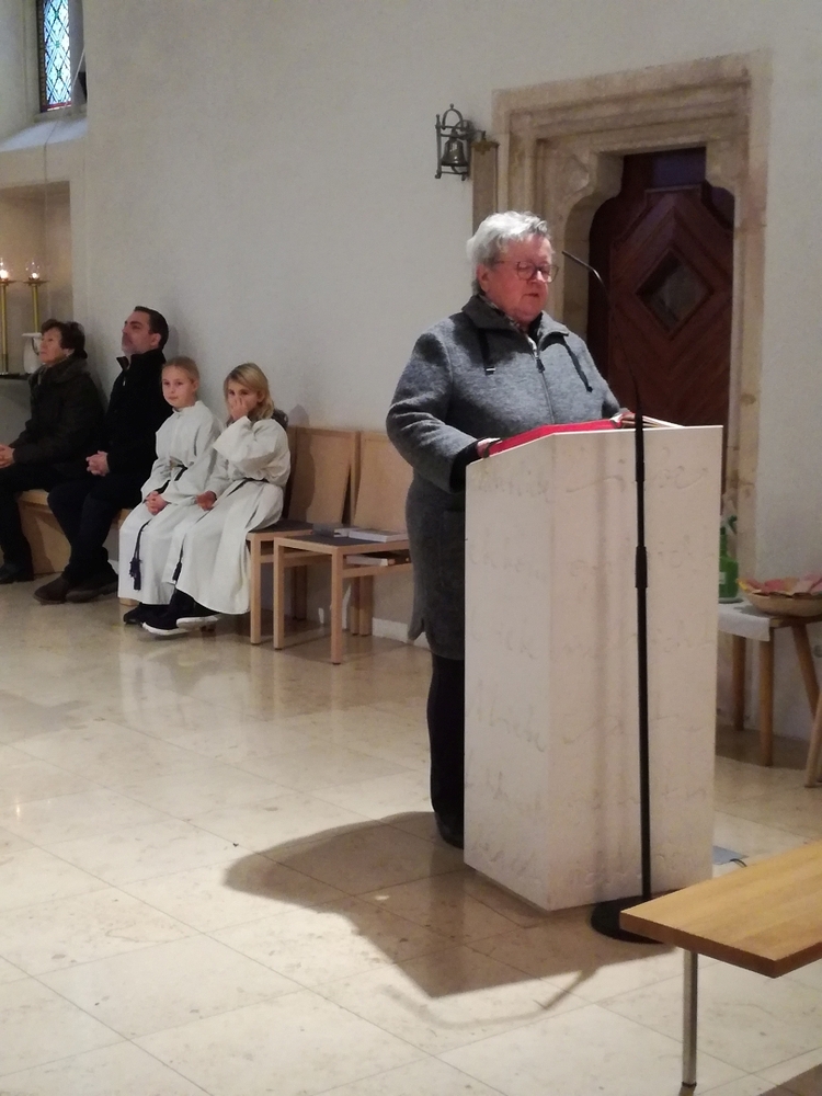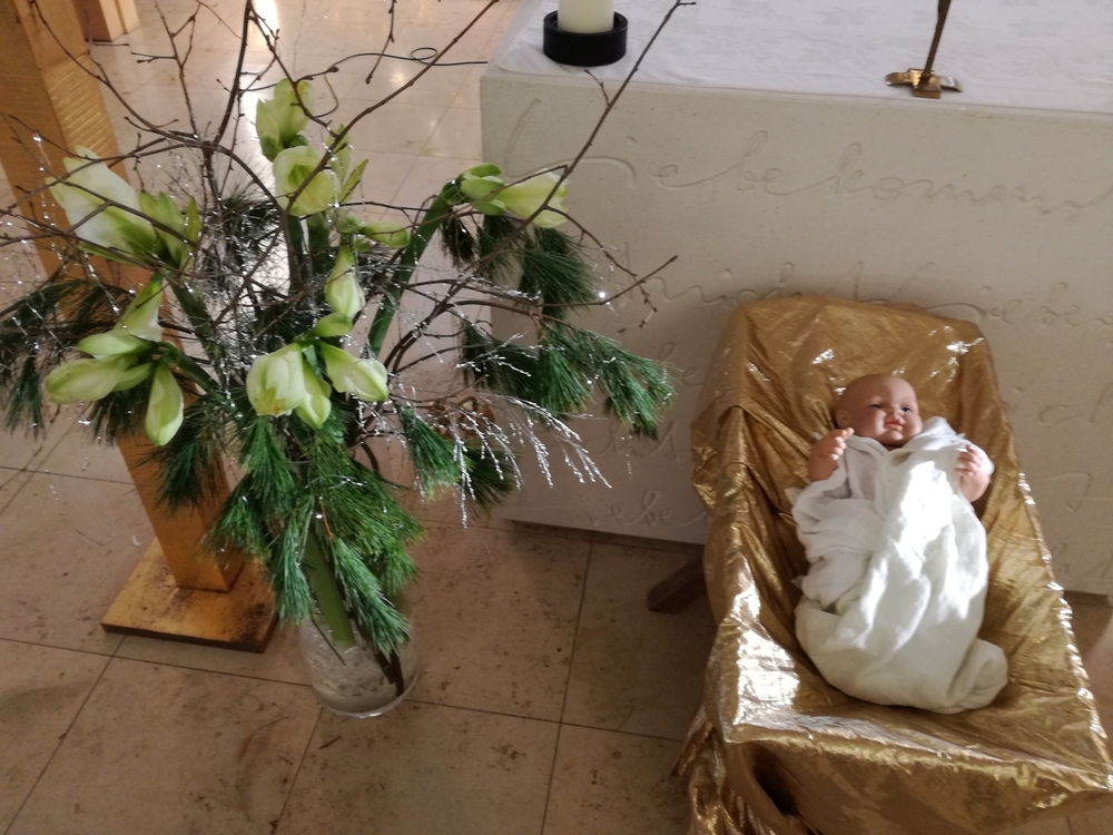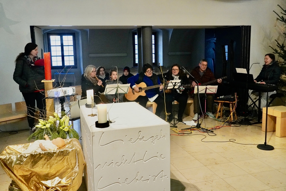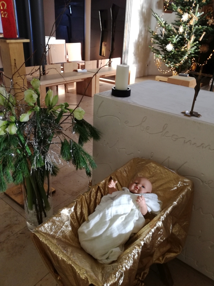 Die Christmette, dieses Mal eine Wort-Gottes-Feier mit Kommunionspendung, feierte Diakon Wolfgang Garber mit uns. In seiner Predigt lud er uns ein, es Weihnachten werden zu lassen, indem wir uns „in die Krippe unseres Nächsten“ legen, d.h. achtsam und einfühlsam mit unseren Mitmenschen umgehen, sodass „Menschwerdung“ erfahrbar wird. Stimmungsvolle Weihnachtslieder erfüllten die abendliche Kirche und die Herzen.