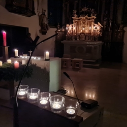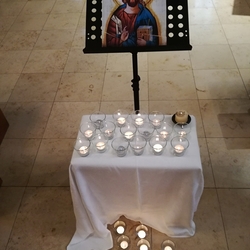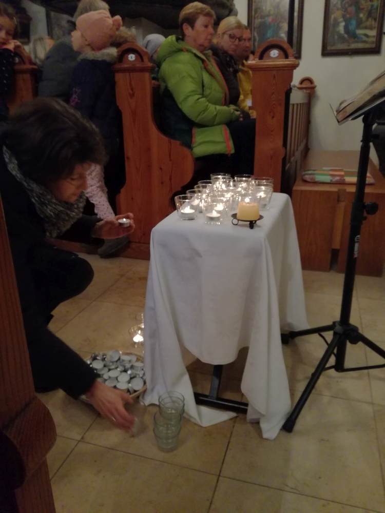 In dem Sinne, dass jede und jeder von uns Friedens- und LichtbringerIn sein kann, waren die Gläubigen eingeladen, Teelichter vor der Christus-Ikone zu entzünden.