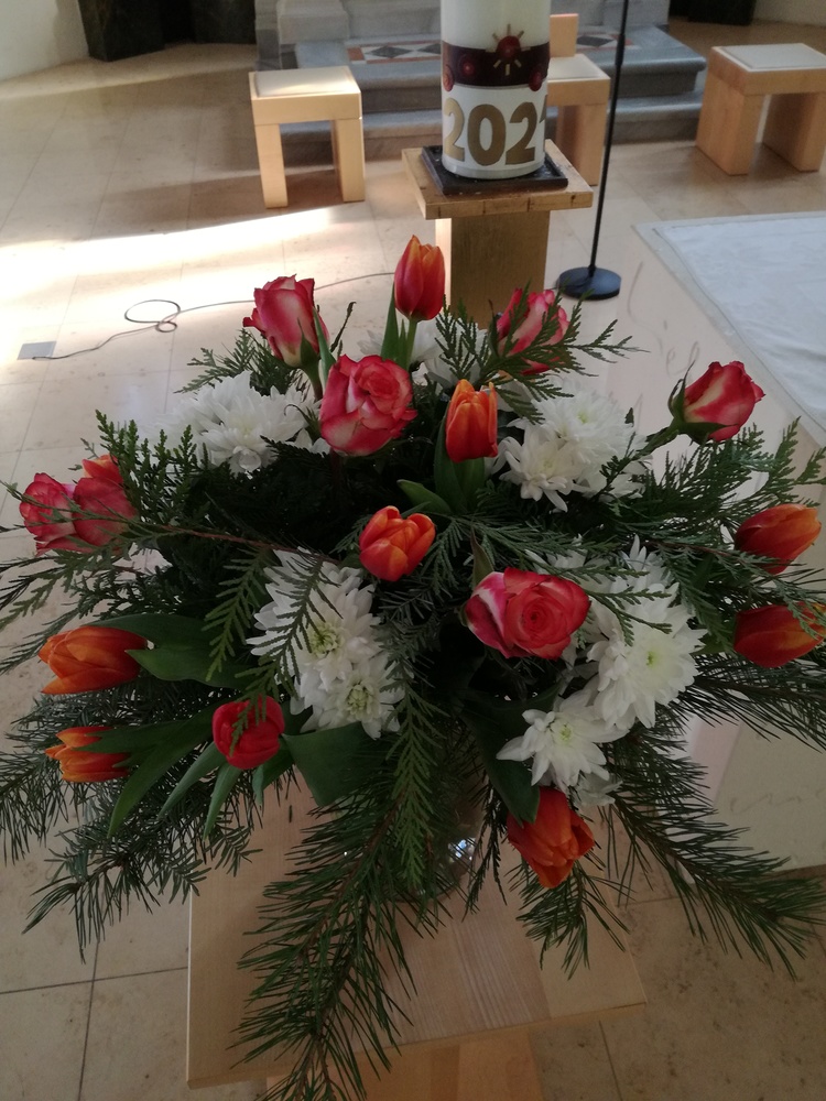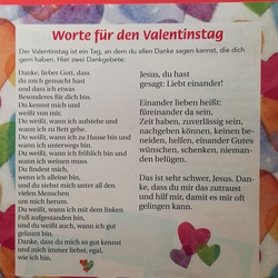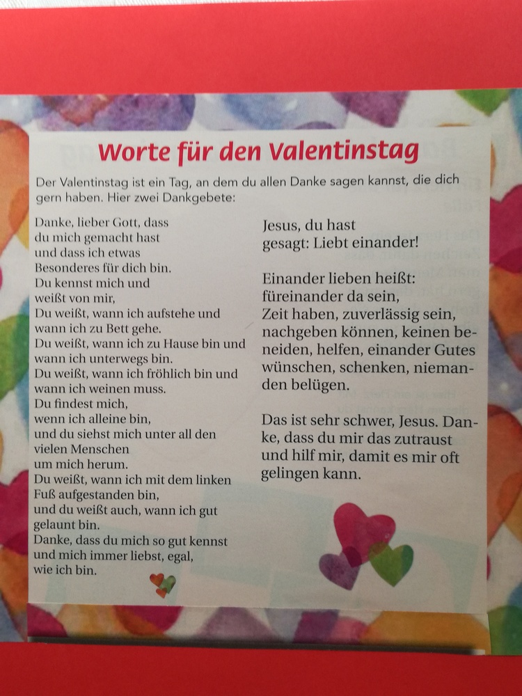 Dazu gab es noch einige Informationen zum heiligen Valentin von Terni, dessen Statue ja auch in unserer Kirche im Altarraum steht. Seine Idee, mit dem Verschenken von Blumen  lieben Menschen eine Freude zu bereiten und Zuneigung auszudrücken, ist heute genauso wertvoll wie damals im 3. Jahrhundert.