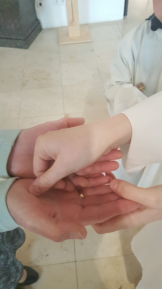 Aller Mütter und mütterlicher Menschen wurde in der Wort-Gottes-Feier am Muttertag besonders gedacht. Anja Asel, Leiterin der Feier, betonte in ihrer Predigt die Ähnlichkeit von mütterlichem Handeln mit dem Wirken des „Guten Hirten“, wie es im Tagesevangelium aufgezeigt wird. Das Ritual der Händesalbung hob schließlich das segensreiche Tun mütterlicher Hände besonders hervor. Kraft und Segen wurden zugesprochen und mit auf den Weg gegeben. In Marienliedern erging auch das Lob an die Mutter aller Mütter, die Gottesmutter Maria.