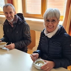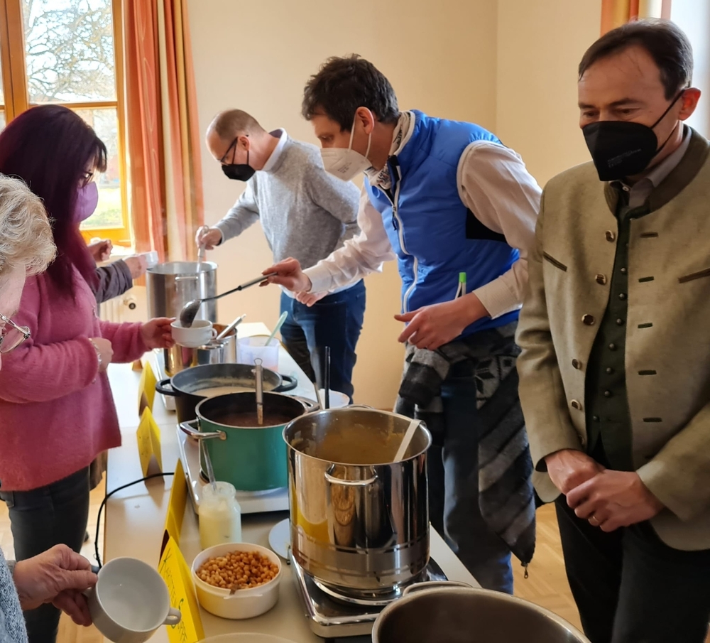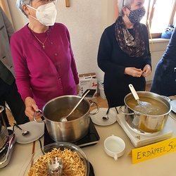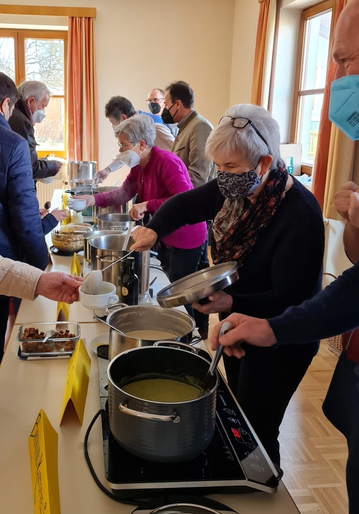 Von Brokkoli-Kartoffelsuppe über Erdäpfel-, Frittaten-, Gemüse- und Käsesuppe bis hin zur Karotten-, Knoblauch-, Kürbis-, Linsen- und Tomatensuppe reichte das Angebot am Suppensonntag unserer Pfarre. Man konnte seine köstliche Suppe im Pfarrsaal oder - bei diesem schönen Wetter - sogar im Freien am Stehtisch genießen. Auch die Suppe im Glas wurde gerne mitgenommen. Danke dem PGR fürs Organisieren und allen Suppenesser:innen für die Spenden, die im Rahmen des Familienfasttages karitativen Zwecken zu Gute kommen.