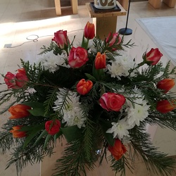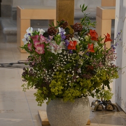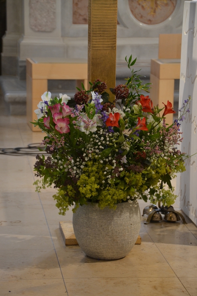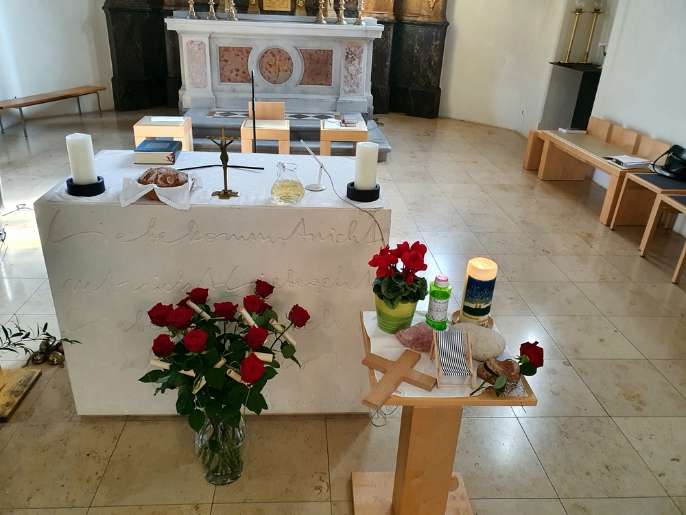 In einem schönen Blumenritual konnte jede und jeder selber in Gedanken aussprechen, was Jesus für sie oder ihn bedeutet. Vielleicht ist er Freund und Begleiter, vielleicht Sonne und Halt im Leben und noch vieles mehr.