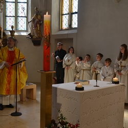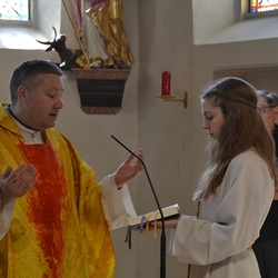 Pfarrer Claudiu Budau, der mit der Pfarrgemeinde feierte, freute sich über die Mitwirkung der Musikschule sowie über die Mitgestaltung des Gottesdienstes durch einige Firmlinge, die Kyrie-Gedanken und Fürbitten vortrugen.