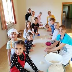 Ein herzliches Danke an Melanie Paier und Anni Stubenrauch, die den Teig vorbereitet hatten, den Minis mit guten Tipps zur Seite standen und die Oberaufsicht beim Backen hatten. Danke auch an Mini-Mama Ulrike für die tolle Unterstützung.