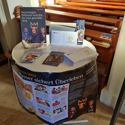 Sollten Sie den Hausbesuch versäumt haben, gibt es bis Mitte Jänner noch die Möglichkeit eine Spende beim Sternsingertisch im Eingangsbereich der Kirche einzuwerfen!