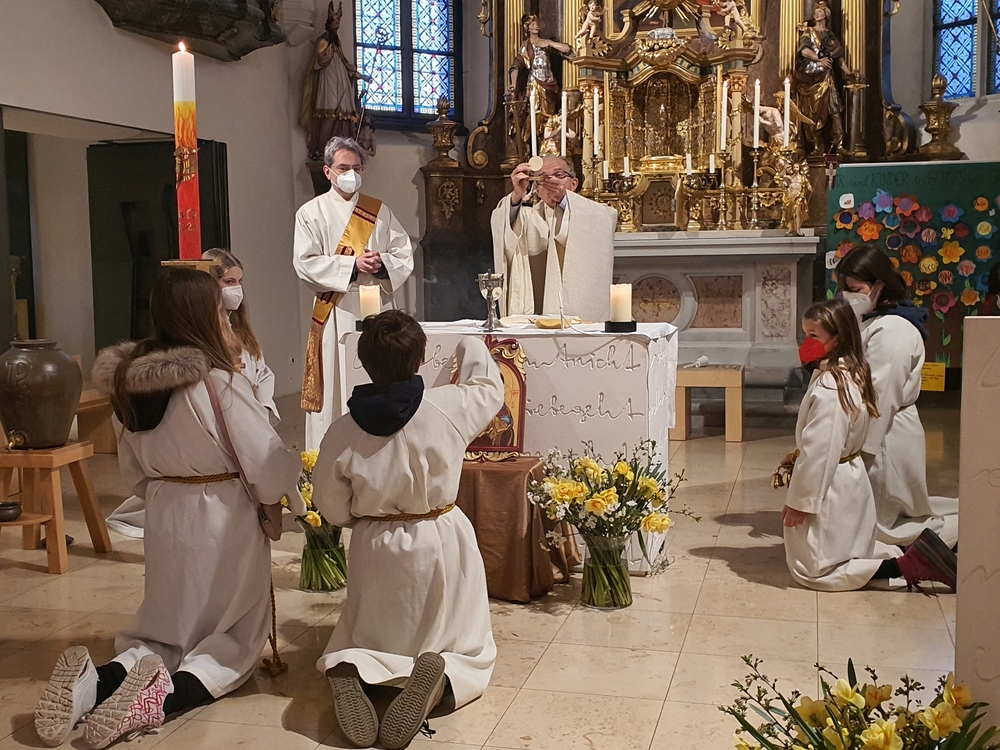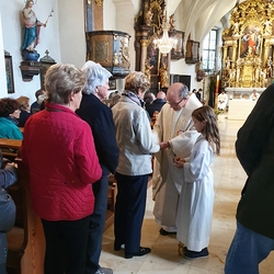 Große Freude erlebten unsere Seniorinnen und Senioren am „Kleinostersonntag“ bei einem schön gestalteten Gottesdienst mit der Möglichkeit, die Krankensalbung zu empfangen. Beim anschließenden geselligen Zusammensitzen im Pfarrheim sorgte der Sozialkreis für ihr leibliches Wohl. Ansprache und Zuwendung im Gespräch sowie die musikalische Untermalung durch Zitherklänge sorgten für Wohlbehagen und gute Stimmung.