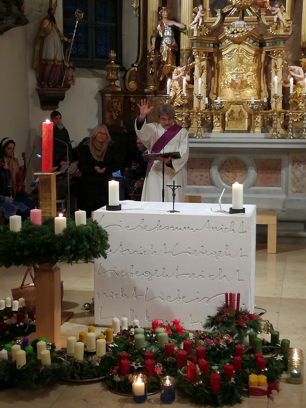 „Wir öffnen unsre Herzen und machen uns bereit für die Ankunft des Herrn“, sangen wir zu Beginn der Wort-Gottes-Feier mit Adventkranzsegnung am Vorabend zum 1. Advent. Genau das ist es, das ist Advent! Diakon Michi Zepf feierte mit uns und die Kirchen-Band begeisterte mit neuen rhythmischen Adventliedern.