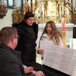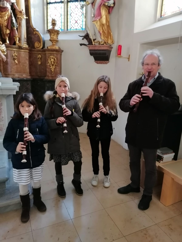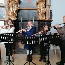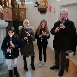 Mit Geigen, Querflöten und Gesang gestalteten Schülerinnen der Musikschule Premstätten mit ihren Lehrerinnen die heilige Messe zum 4. Adventsonntag. Am Keyboard und an der Orgel fungierte Musikschuldirektor Klaus Eder.