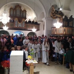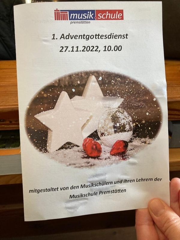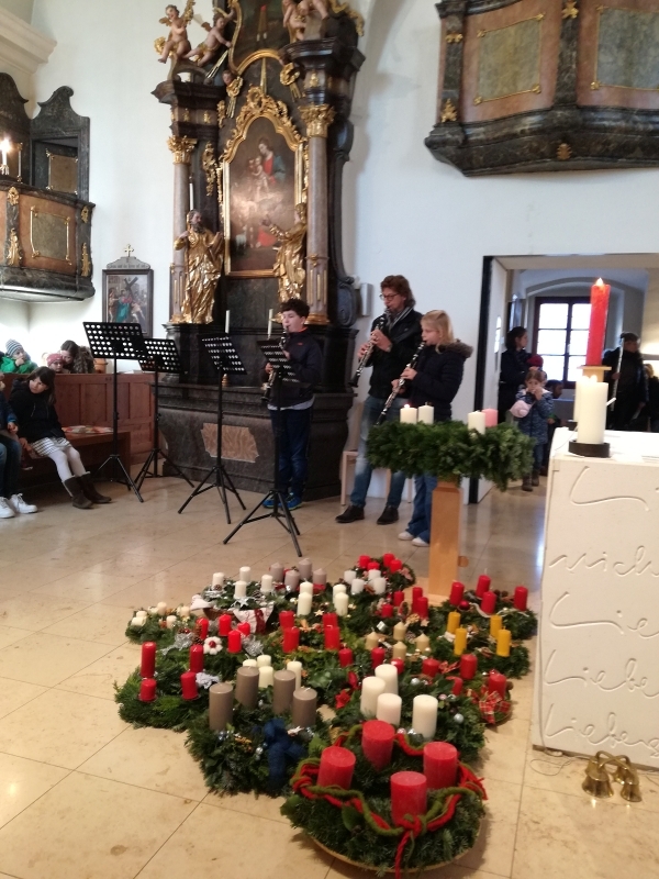 Am 1. Adventsonntag zelebrierte Vikar Gerhard Hatzmann die heilige Messe, segnete zu Beginn die Adventkränze und machte in seiner Adventpredigt Mut, es Gott gleich zu machen und Mensch zu werden. Musikalisch gestalteten die Holzbläserensembles der Musikschule Premstätten den Gottesdienst mit schönen adventlichen Klängen.