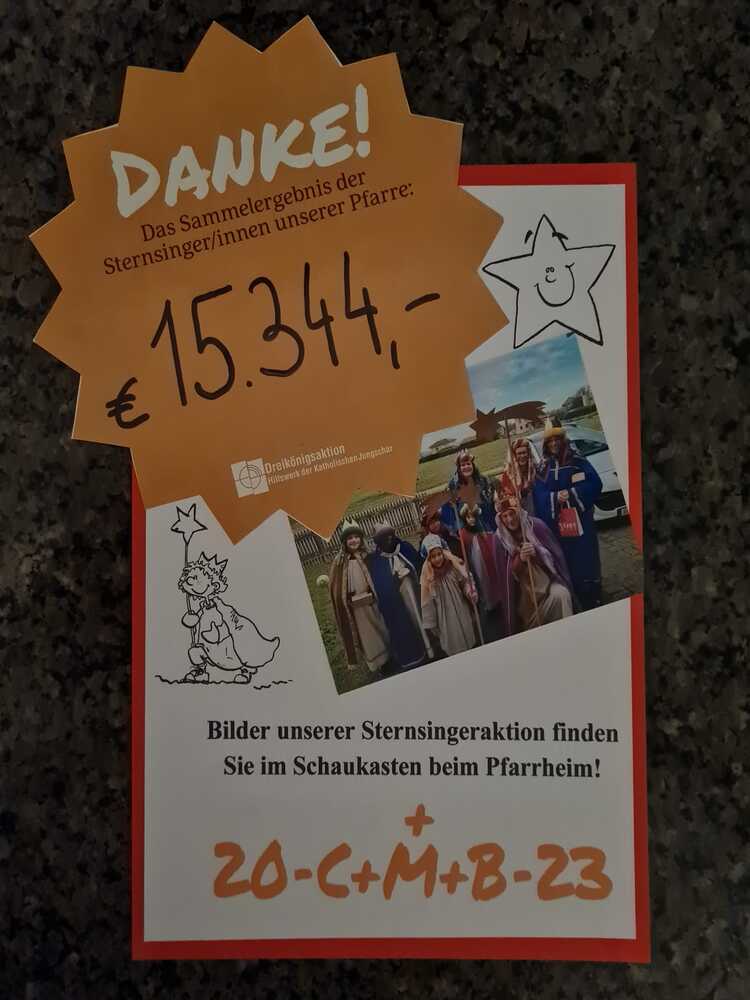 So durften die Sternsinger diesmal 15.344,- Euro in unserer Pfarrgemeinde sammeln.