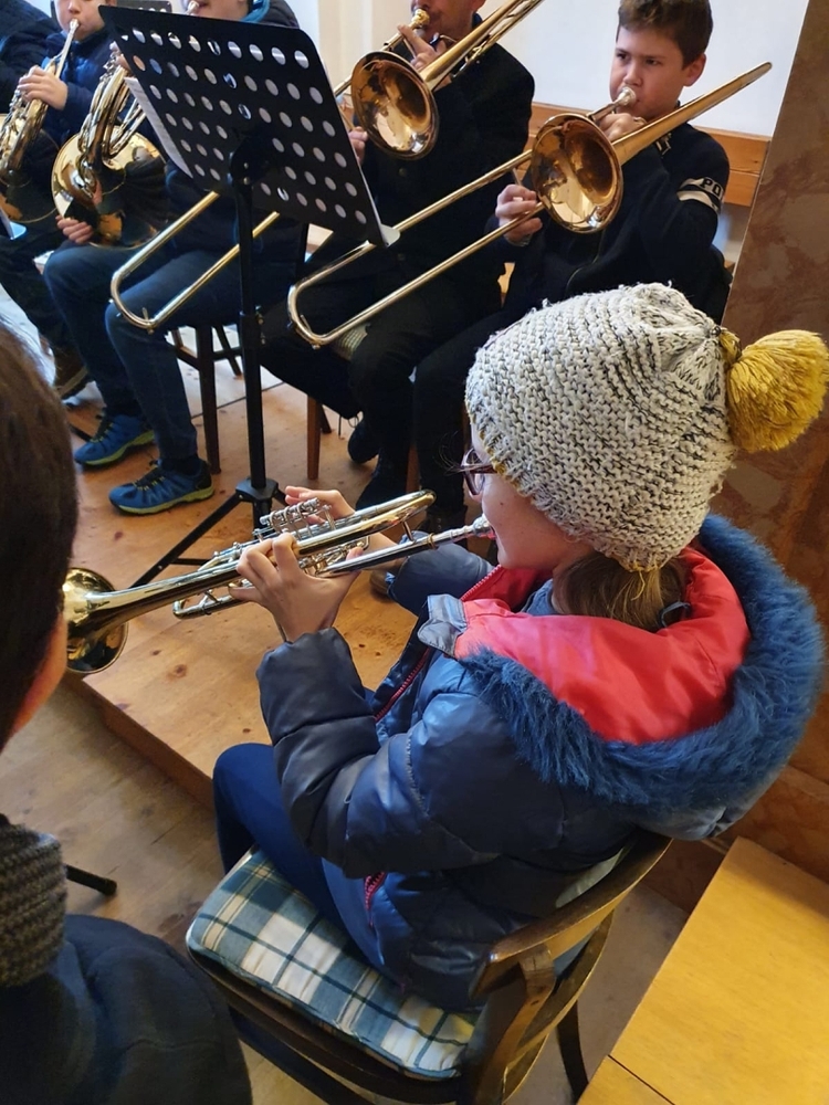 Auf die Christmette, heuer um 21 Uhr, stimmte uns eine Abordnung der MUZ  am Kirchplatz mit weihnachtlichen Weisen musikalisch ein. Herzlichen Dank dafür!