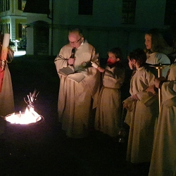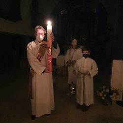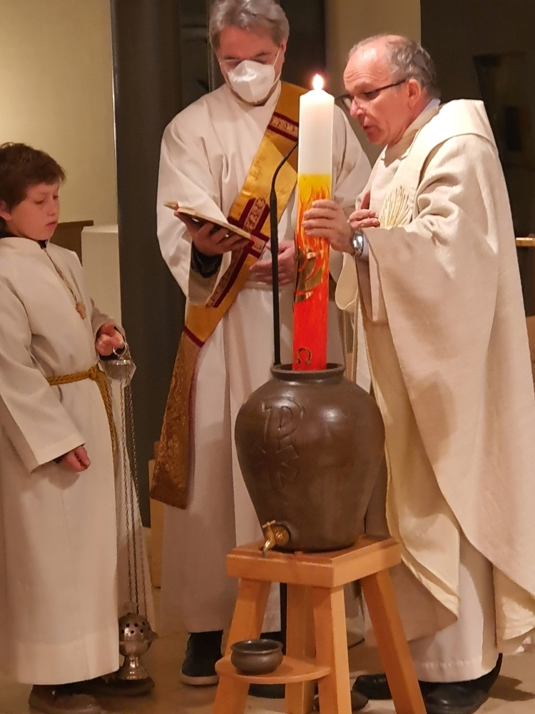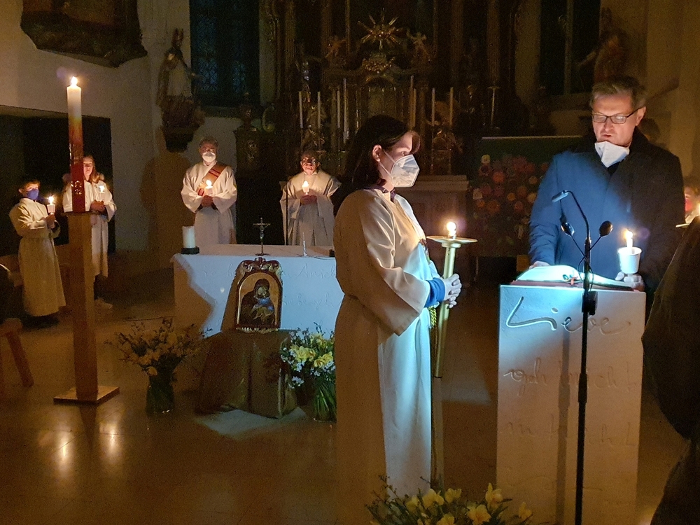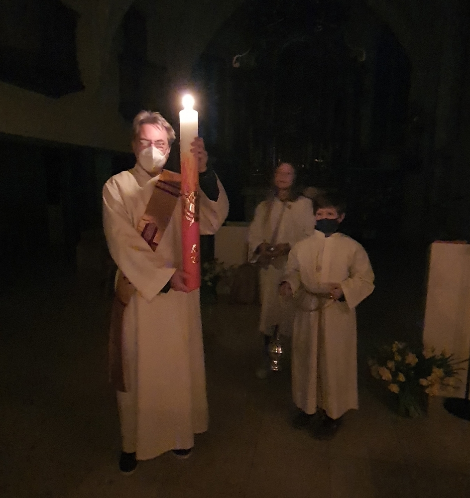 Am frühen Morgen des Ostersonntags feierten wir mit Vikar Norbert Glaser und Diakon Michi Zepf die Auferstehung unseres Herrn, Jesus Christus.