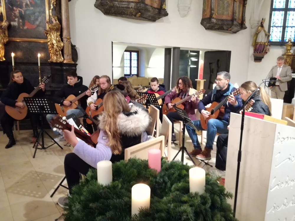 Das Gitarrenensemble der Musikschule Premstätten sorgte am 2. Adventsonntag bei der Wort-Gottes-Feier, die von WGF-Leiter Helmut Kirchengast gefeiert wurde, für eine wunderschöne musikalische Gestaltung.