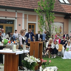 Alle Paare, die an diesem strahlenden Sonntag gekommen waren, genossen das gemeinsame Feiern in der Kirche und das anschließende Zusammensitzen beim Pfarrcafe sehr.