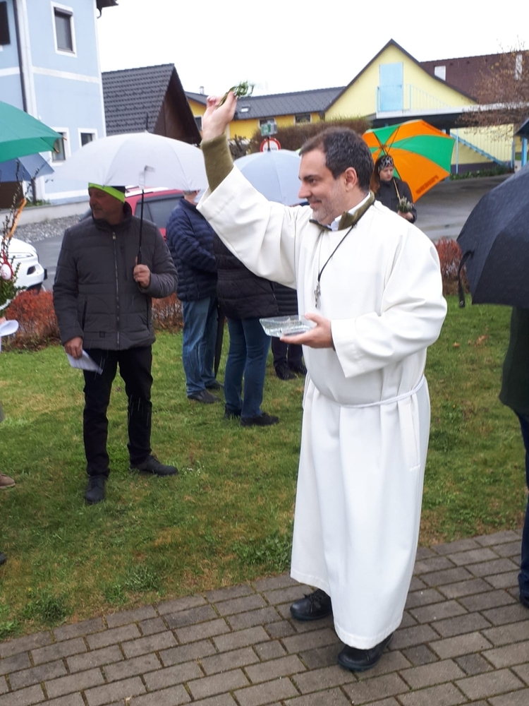 Am Palmsonntag fand die erste Sternwallfahrt des Seelsorgeraumes Kaiserwald statt - Ziel war die Kaiserwaldkapelle in unserer Pfarre. Trotz ziemlichen Regens haben sich mehr als 60 Wallfahrer eingefunden und haben bei einer Wortgottesfeier ihre Palmbuschen segnen lassen. Bei einer Agape konnten sich die Teilnehmer austauschen und haben dann noch gesegnetes Salz für die Osterspeisen mit nach Hause genommen.