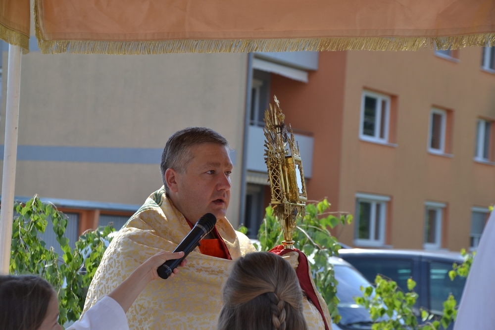 Mit Musik, Gebet und Gesang bewegte sich die Prozession zu den vier Altären, wo Lob und Dank, aber auch Fürbitte ausgesprochen wurden.