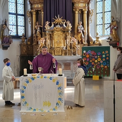 Am 3. Fastensonntag feierte Claudiu Budau dann überraschend auch die Sonntagsmesse bei uns. Im Mittelpunkt stand Gottes Zusage an uns - „Ich bin da“ und stehe zu euch, auch in so schwerer Zeit!