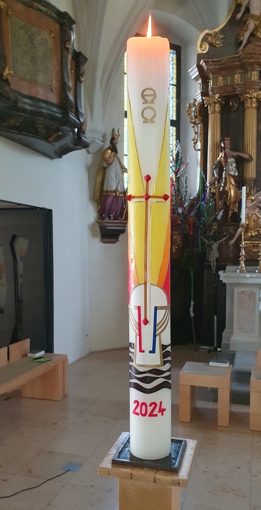 Herzlichen Dank an Ingeborg Stubenrauch für die wunderschön gestaltete Osterkerze 2024!